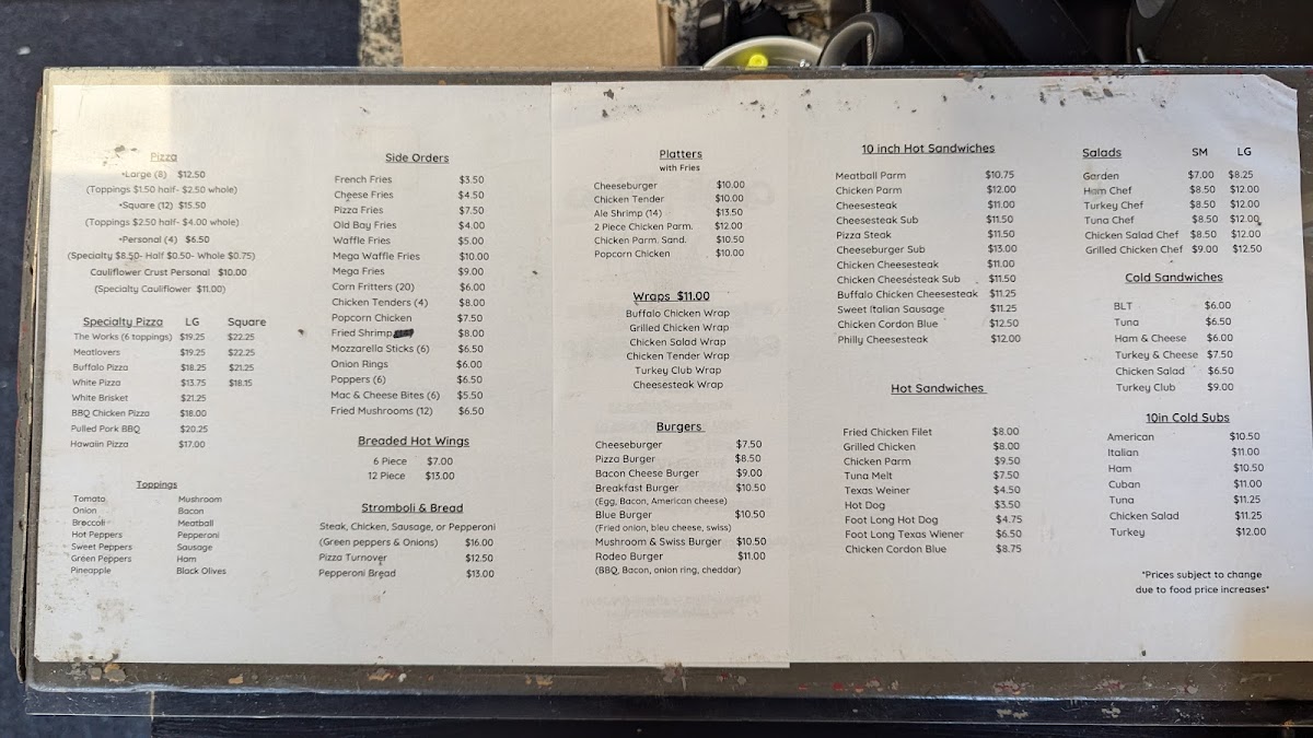 “ Staff were very friendly. Nice quiet spot to take the family for lunch. Really enjoyed the cheesesteak. Very well seasoned and the flavors blended so well. Already look forward to going again to try the pizza! Highly recommend ”